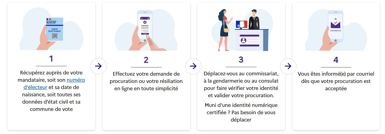 En cas d’absence le jour du scrutin, vous pouvez établir une procuration. Celle-ci vous permet de désigner un électeur inscrit dans la même commune pour voter à votre place. La démarche est à effectuer en ligne sur www.maprocuration.gouv.fr.